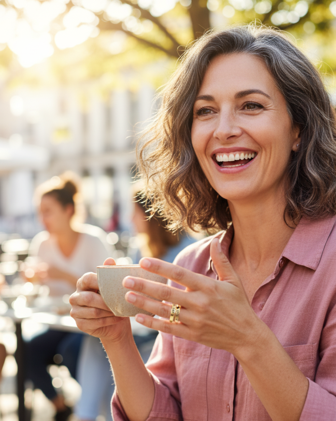 Deze ring is meer dan alleen een modeaccessoire. Het is een herinnering. Een zachte stem die fluistert: “Je bent goed zoals je bent. Niet pas als je meer doet, meer geeft of minder voelt. Nu. Precies zo.”